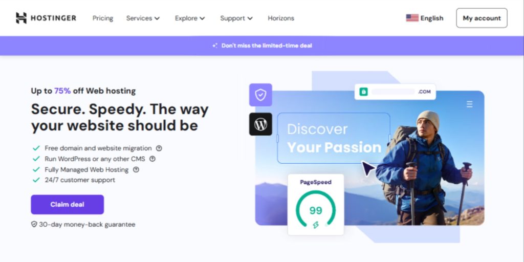 Hostinger es una excelente opción si estás empezando o si quieres crear una web de forma rápida y económica. Funciona especialmente bien para blogs, páginas personales, nichos SEO y pequeños negocios.